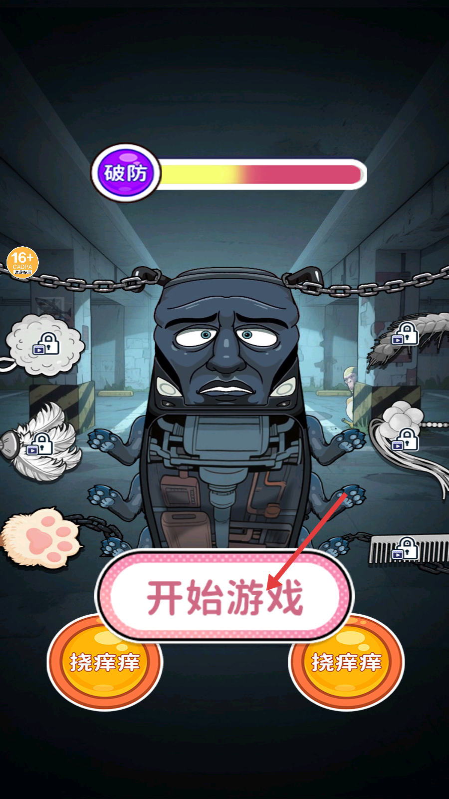 1、进入游戏,点击【开始游戏】,准备参与“帮他挠痒痒”的互动玩法,界面上方有【破防】进度条可关注。