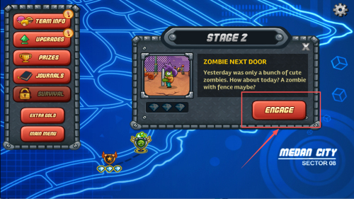 3、如何进入关卡?在游戏菜单中,点击“STAGE 2”并选择“ENGAGE”按钮,进入第二关。