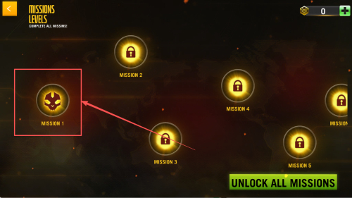 3、如何选择任务?在任务选择界面,点击想要进行的任务,如“MISSION 1”,准备开始任务。