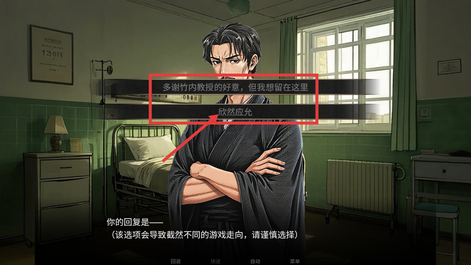 2、对话时出现选项,如【欣然应允】等,需谨慎选择,因为不同选项会带来截然不同的游戏走向。