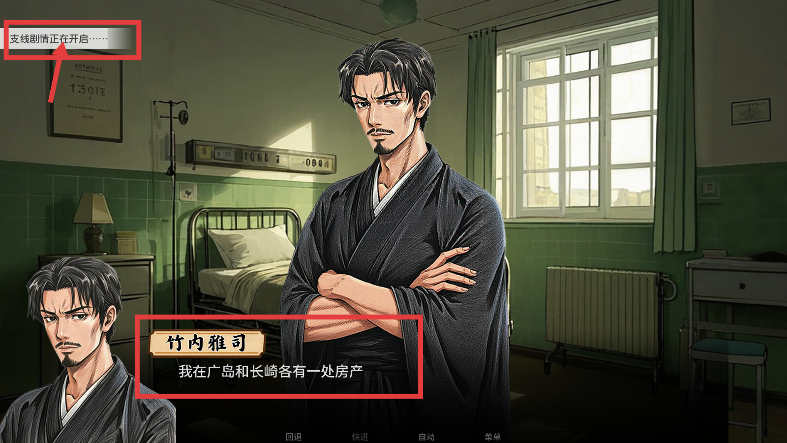 3、与【竹内雅司】互动时,可能触发【支线剧情正在开启……】,留意他提及的广岛、长崎房产等信息,探索支线内容。