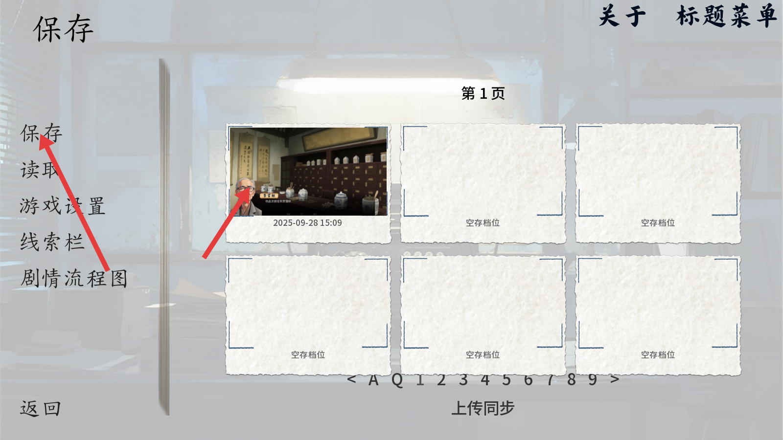 4、在过程中进入存档界面,点击【保存】,将当前进度存到存档位,方便后续继续游戏。