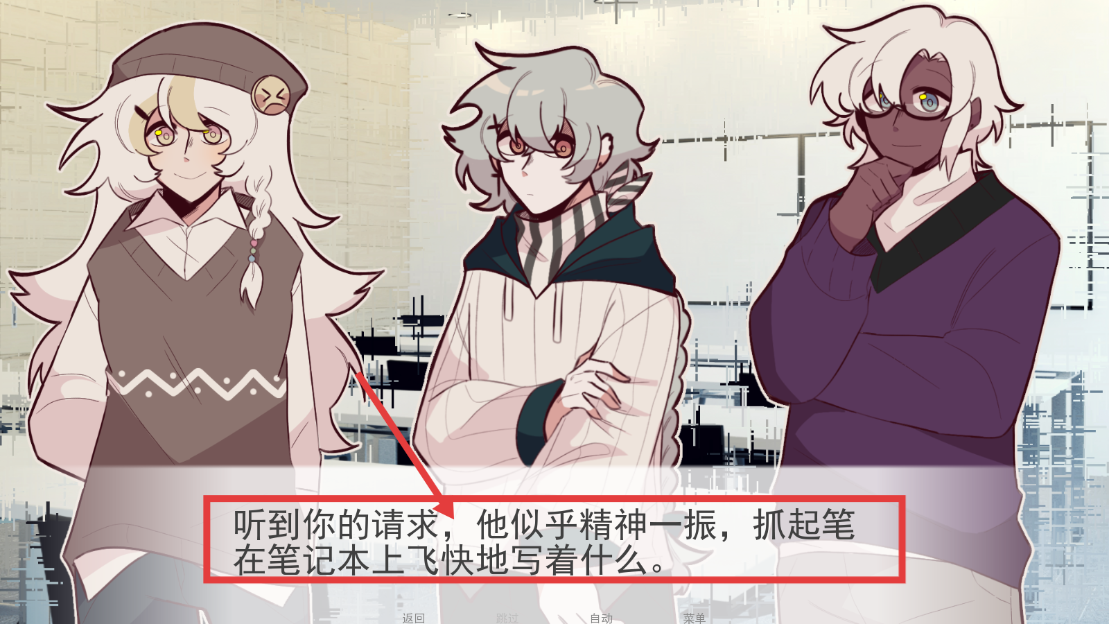 3、选择【让Fone帮忙】后,他会精神一振,抓起笔在笔记本上飞快书写,推动剧情进展。