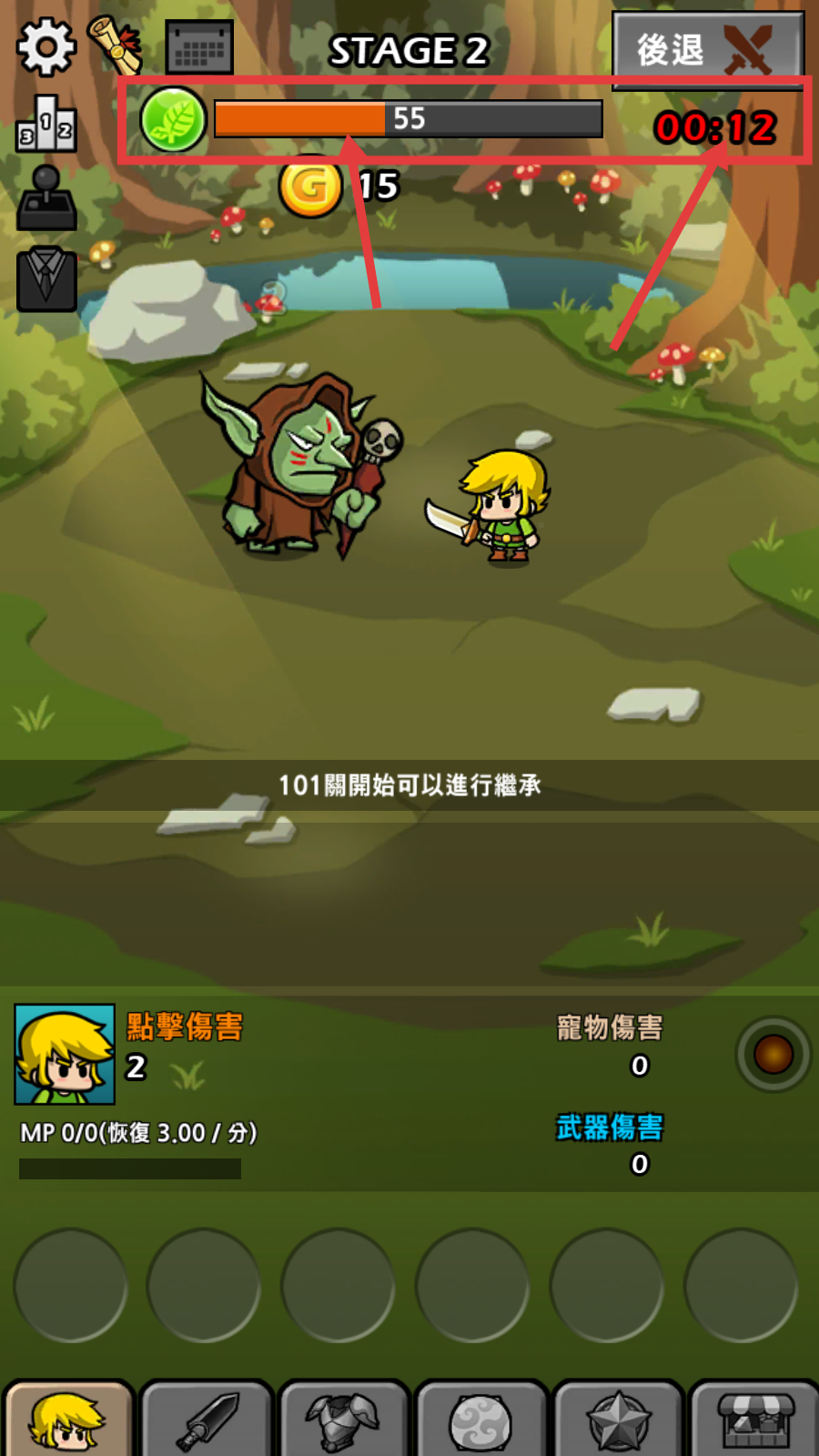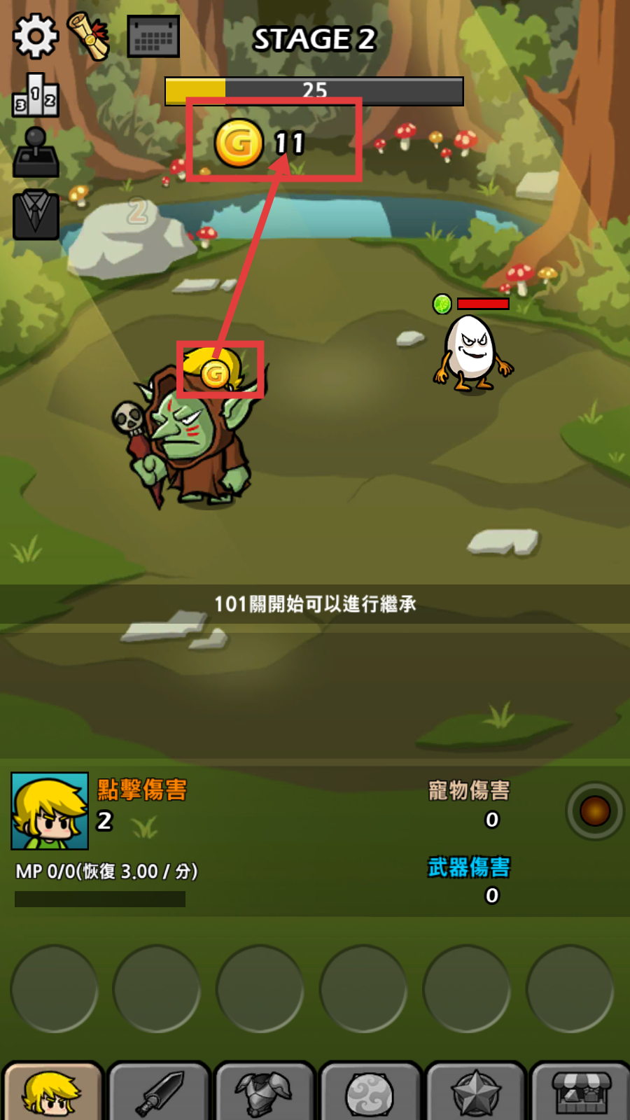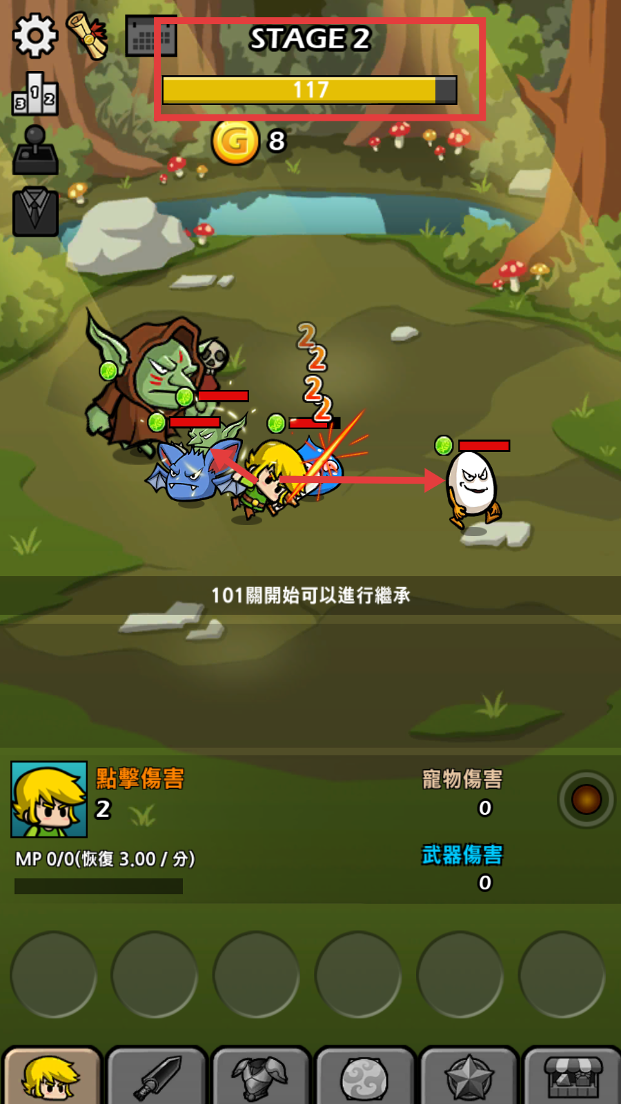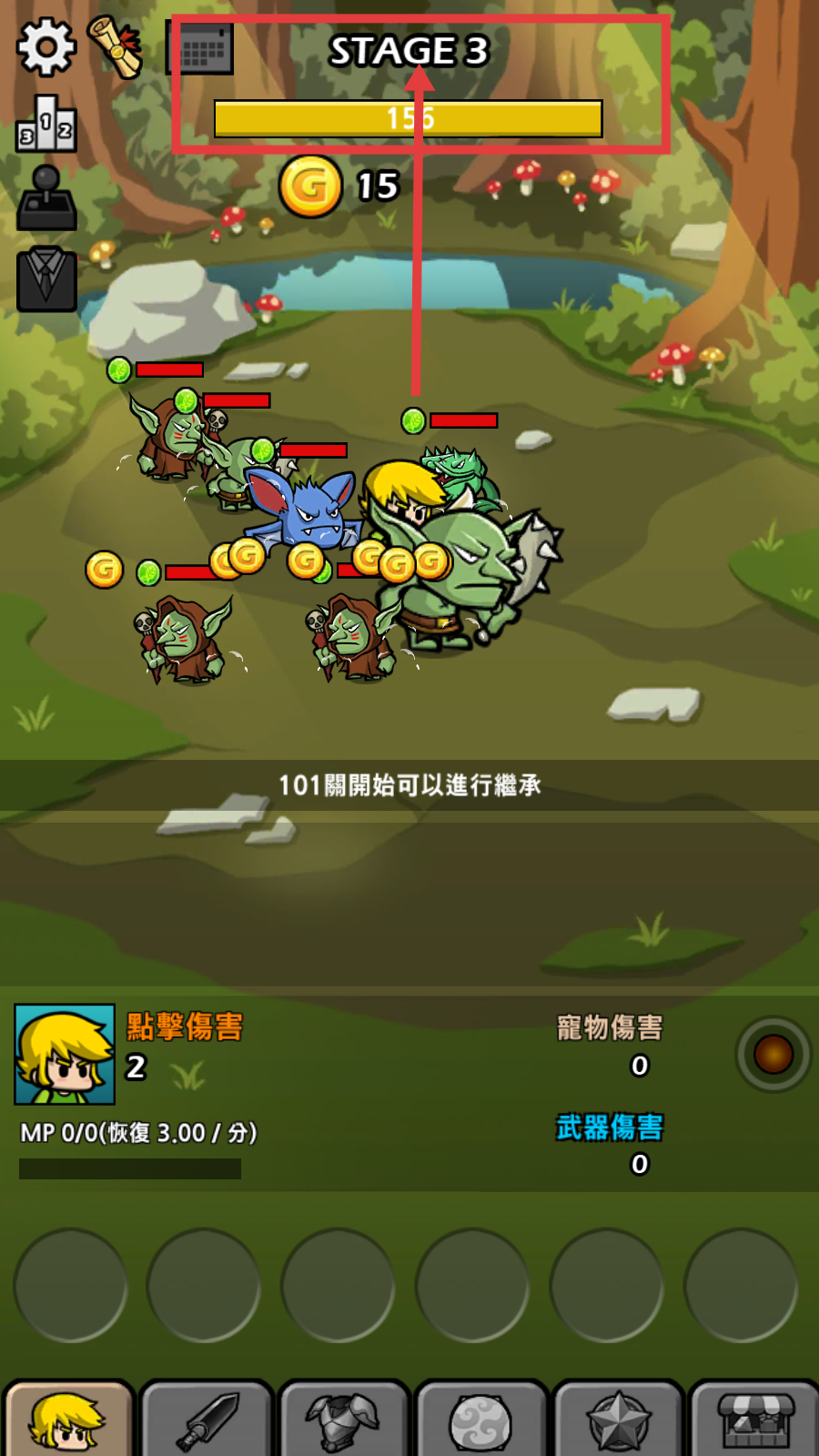 1、在【STAGE2】,点击敌人发起攻击,推进黄色进度条,同时积累金币,逐步完成本阶段目标。