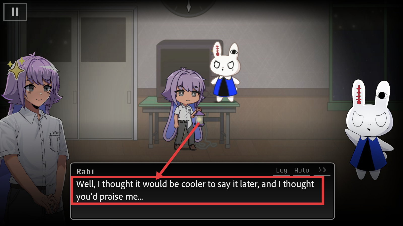 3、听Rabi的对话,比如“Well,Ithoughtitwouldbecoolertosayitlater,andIthoughtyou'dpraiseme...”,了解角色性格与剧情细节,助力沉浸体验。