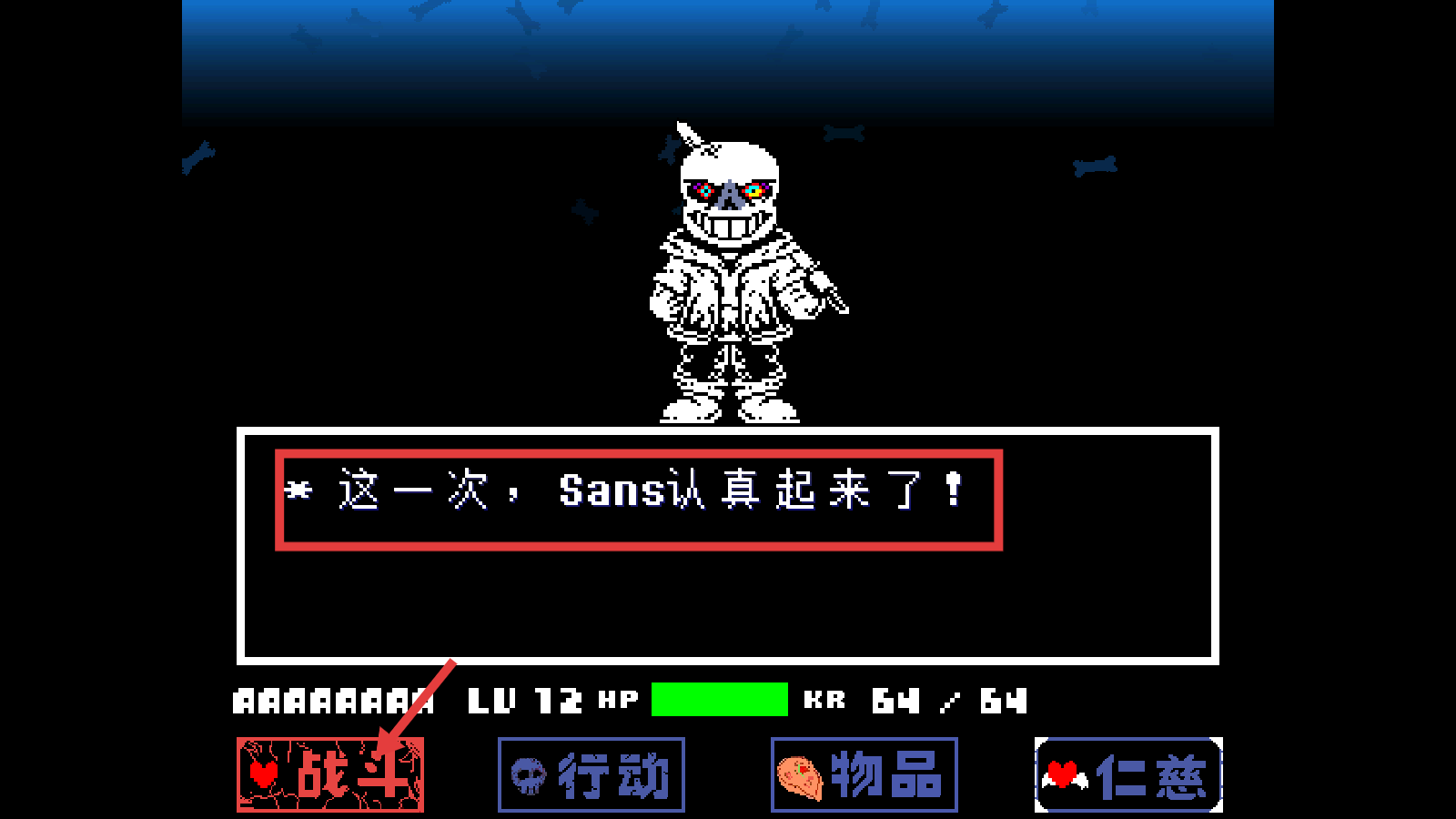 2、遇到Sans认真起来的战斗场景时,点击【战斗】选项,积极应对这场关键对决。