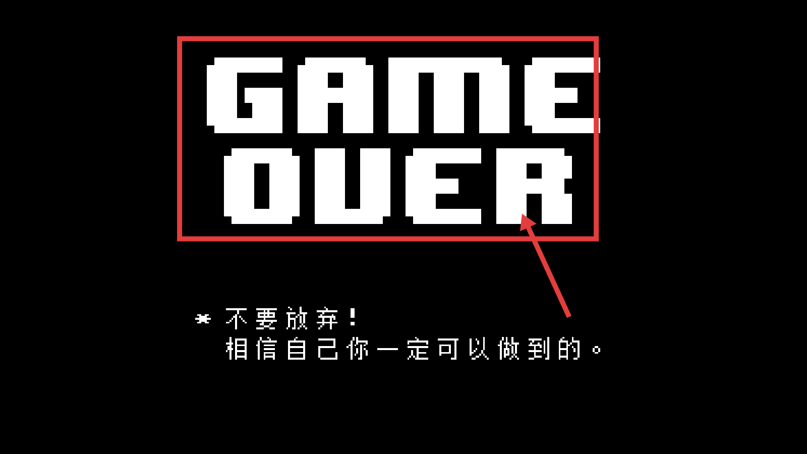 4、若出现【GAMEOVER】,不要气馁,牢记“不要放弃!相信自己你一定可以做到的”,重新挑战继续尝试通关。