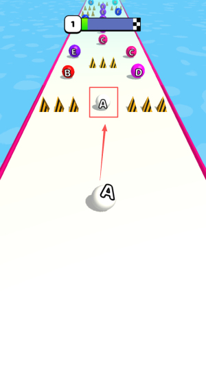 3、避障碍达终点:遇到障碍物时,确保字母球已合并到足够大小,再操控球顺利越过,避免因球体积过小被障碍阻挡,影响通关进度。