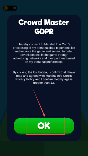 1、如何同意隐私条款?点击“OK”按钮,确认你已阅读并同意隐私政策,且年龄大于13岁,即可继续游戏。
