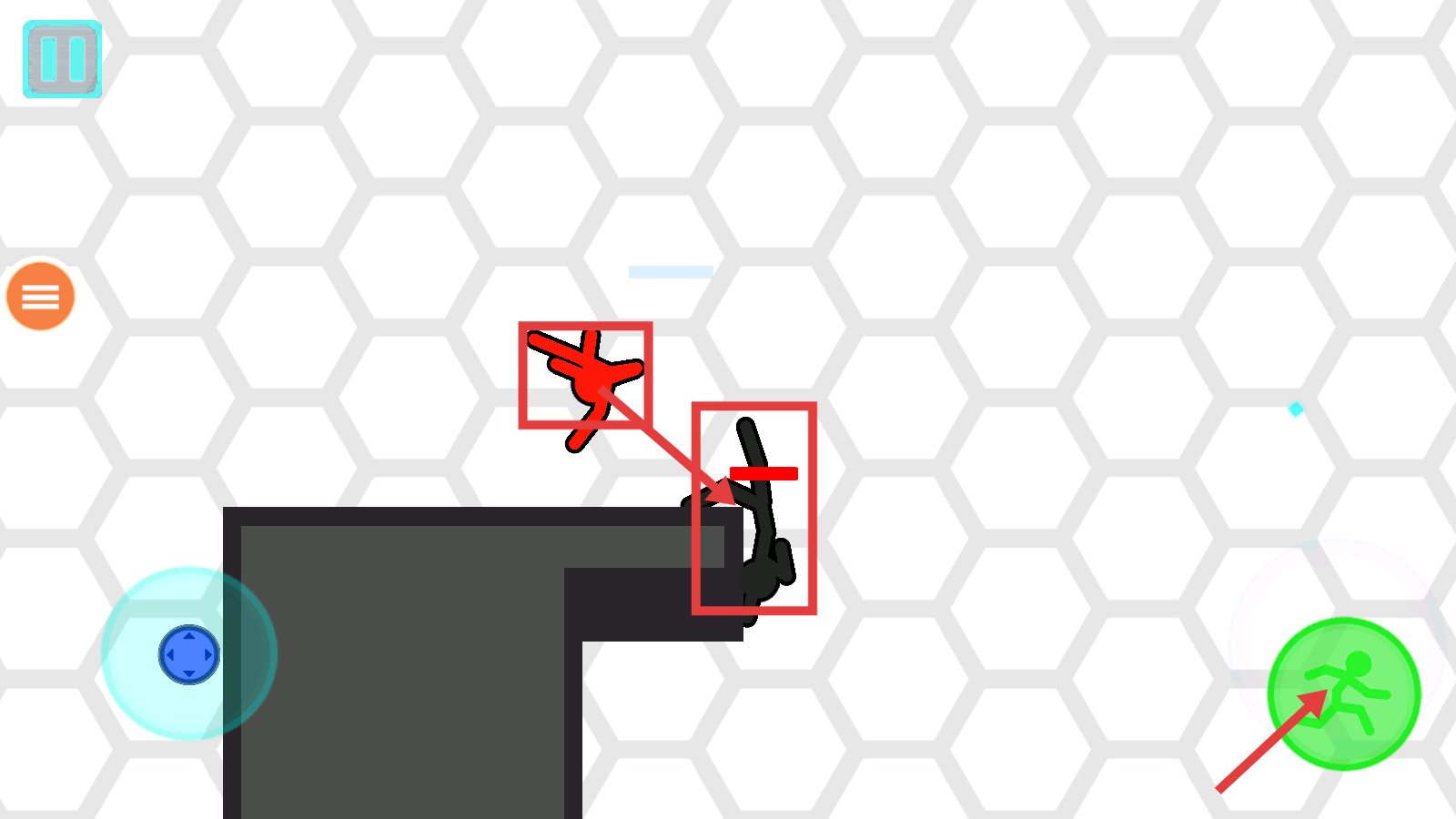 4、角色操控流程:通过虚拟按键控制火柴人移动与攻击,灵活闪避敌人进攻并抓住时机反击,完成战斗任务。
