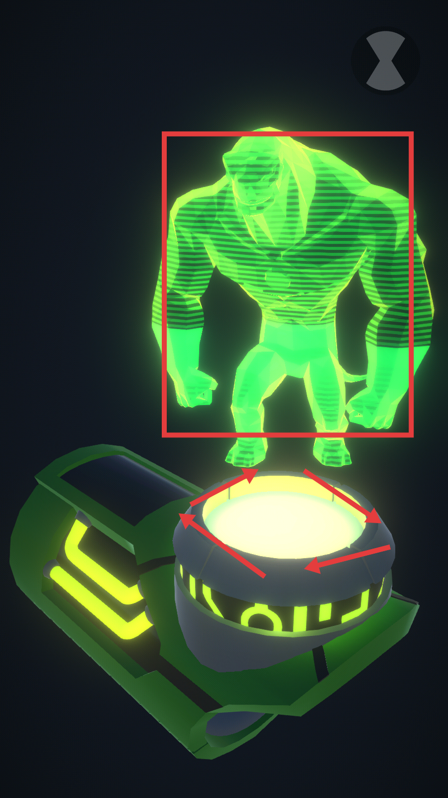 2、滑动Omnitrix时,会出现像图中带触手的绿色外星形象,这是切换角色的关键操作。
