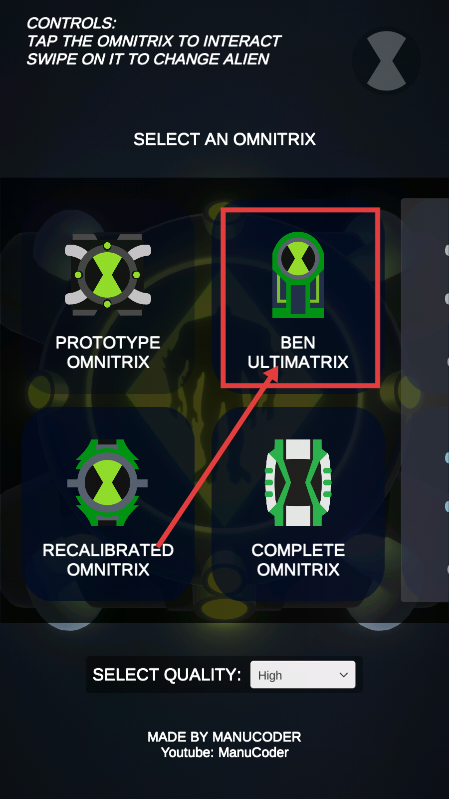 1、先选【BEN-ULTIMATRIX】,记住【CONTROLS】提示,点击可交互,滑动能换外星角色。