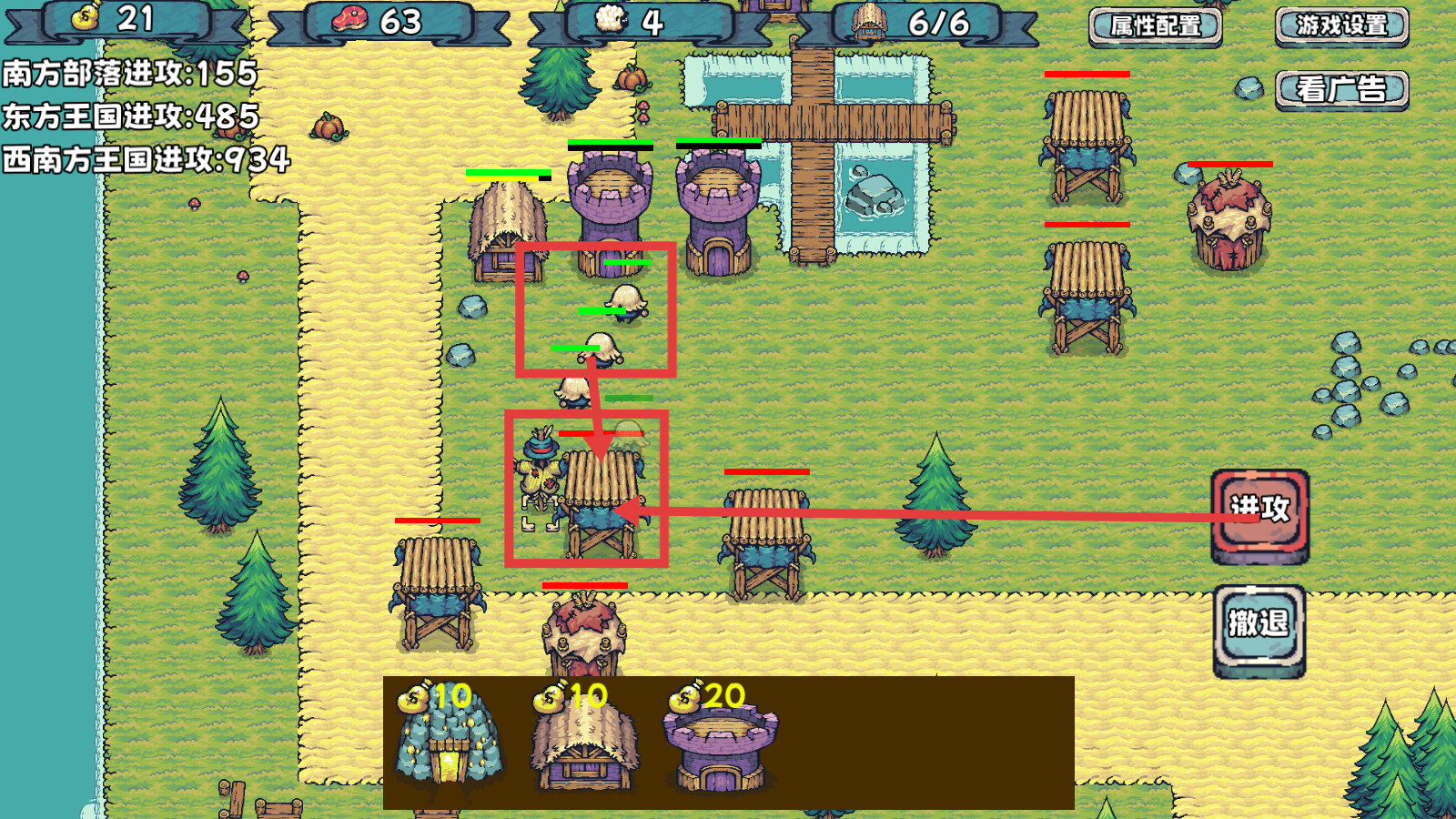 3、点击【进攻】按钮,派遣单位攻击敌方建筑,同时依托己方建筑保障战斗优势,推进战局。