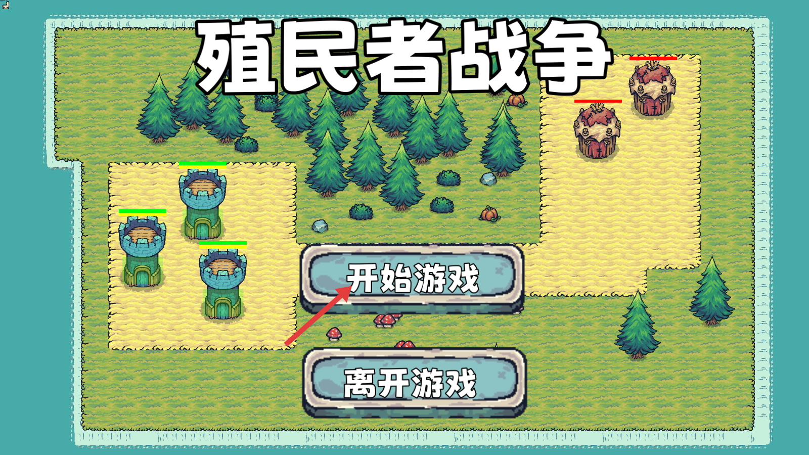 1、点击【开始游戏】,进入“殖民者战争”的战场,准备利用初始资源建设与防御。