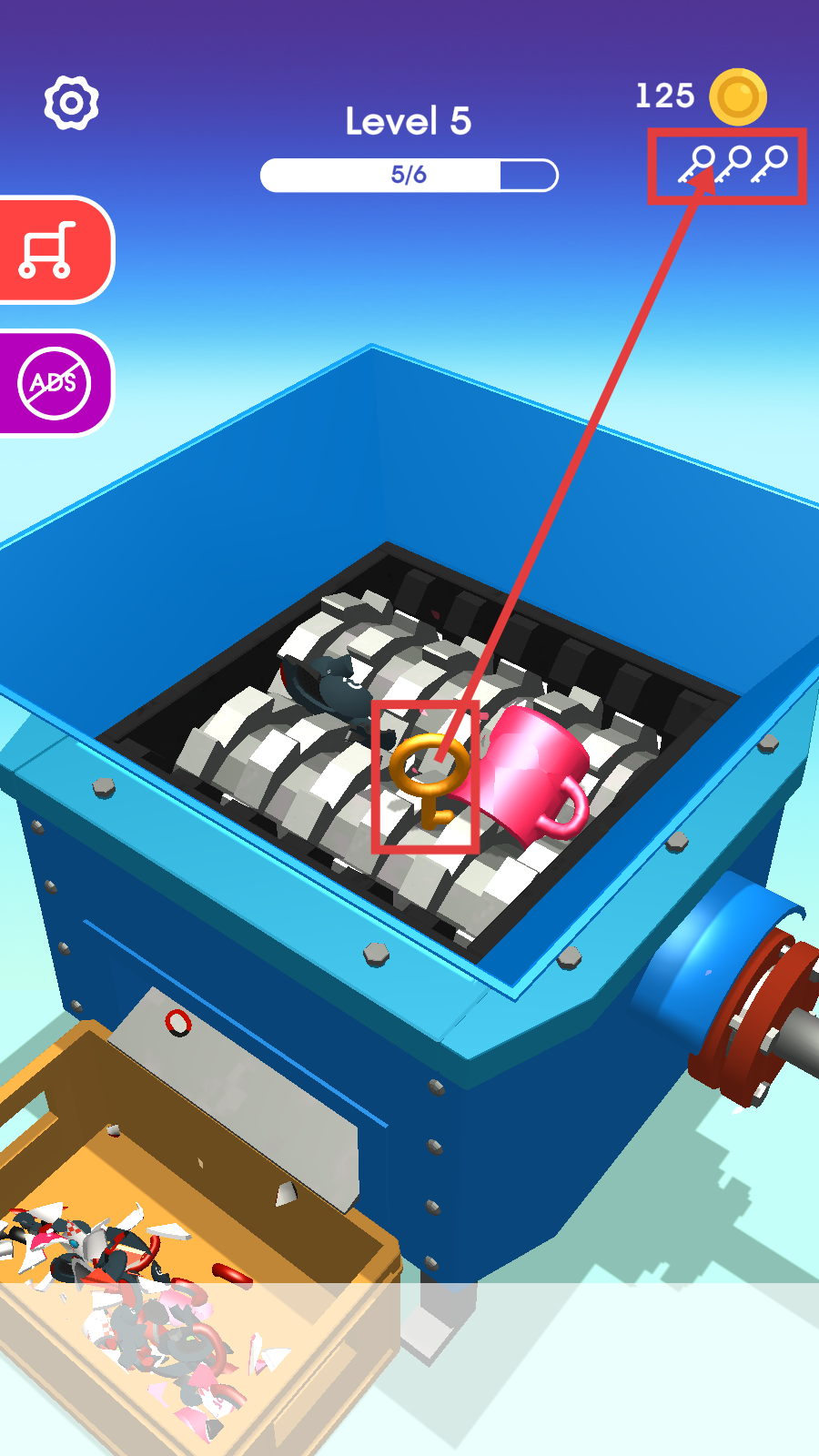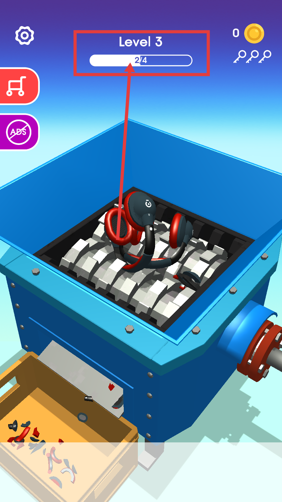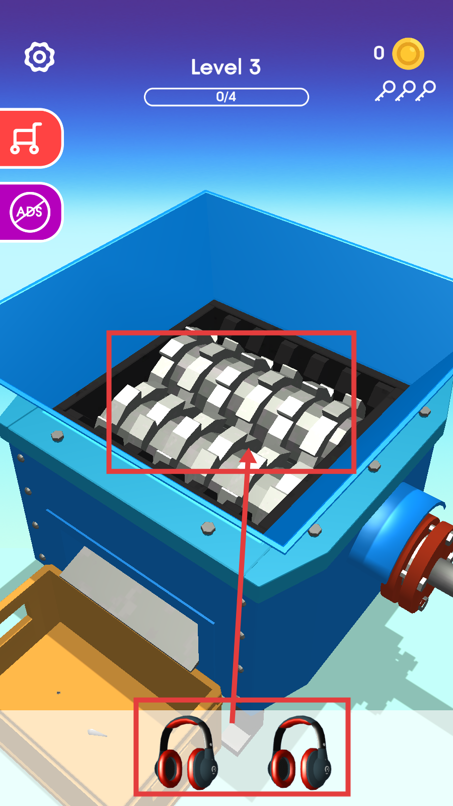 1、进入【Level-3】,将下方的耳机拖入粉碎机,开始粉碎操作,推进关卡进度。