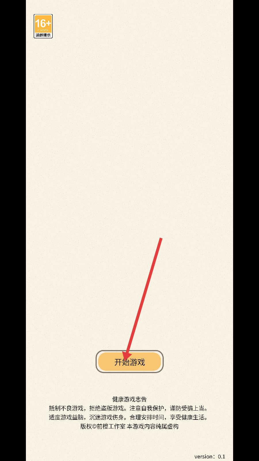 1、看到【16+-CADPA适龄提示】后,点击【开始游戏】按钮,即可进入游戏主界面,开启冒险。