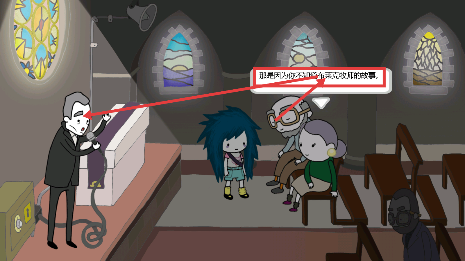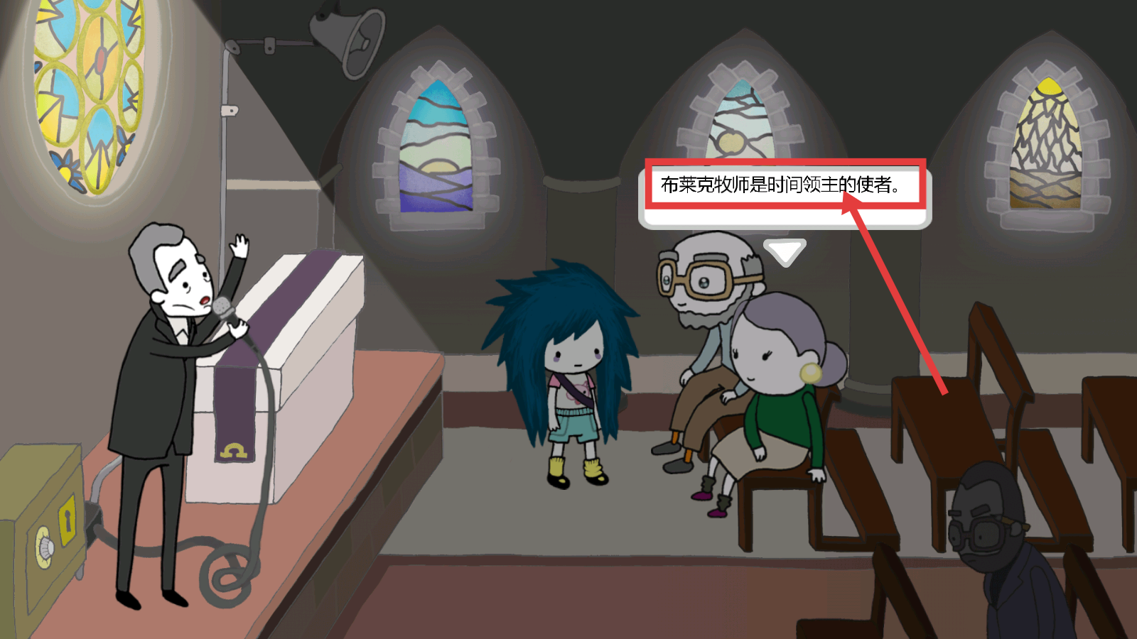 4、通过对话得知【布莱克牧师】是时间领主的使者,牢记该设定,对后续探索时间相关剧情有帮助。