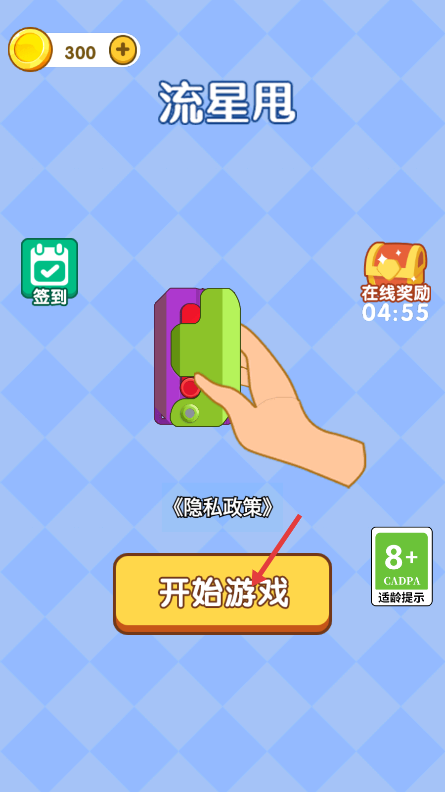 1、点击【开始游戏】按钮,进入【流星甩】游戏,开启关卡挑战。