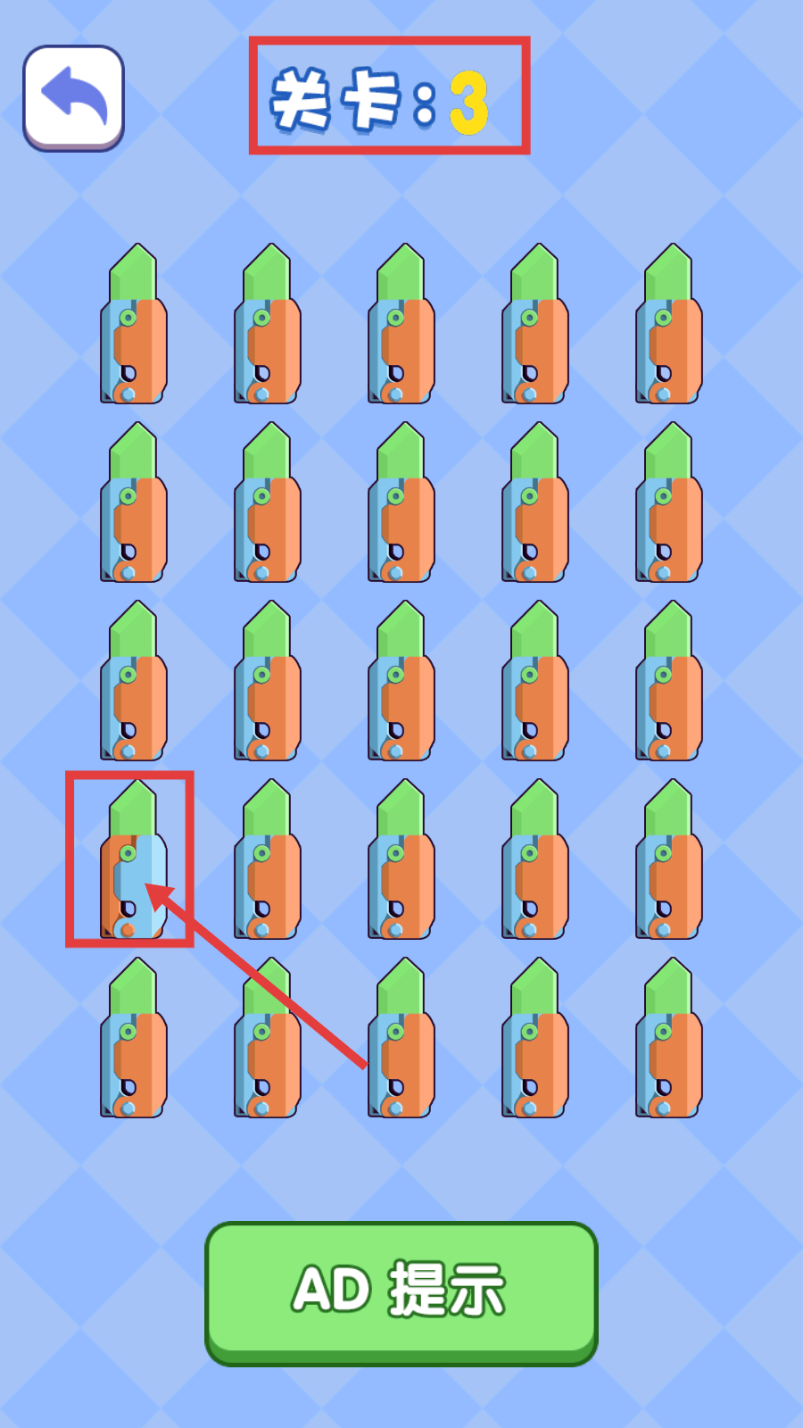 3、进入【关卡:3】后,仔细辨别道具间的不同,锁定特殊道具并进行精准操作。