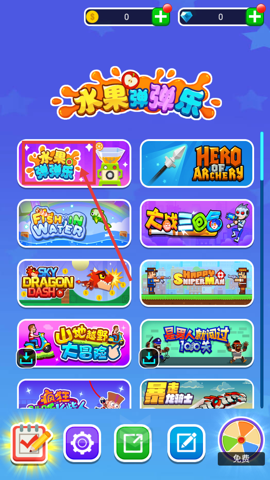 1、点击【水果弹弹乐】,进入游戏开启挑战,准备体验弹射玩法。