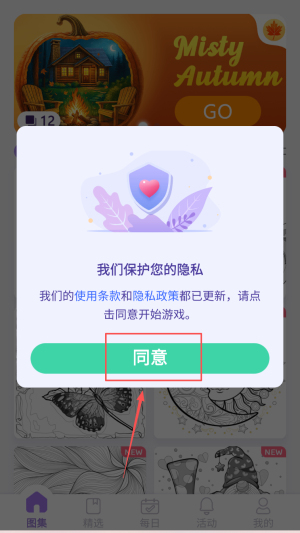 1、首先,点击“同意”进入游戏主界面。