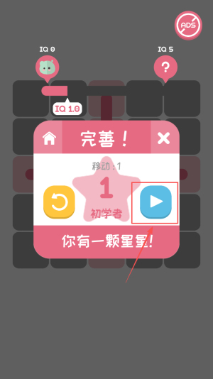 2、接着,IQ1.0关点“完善!”领取1颗初学者星星。