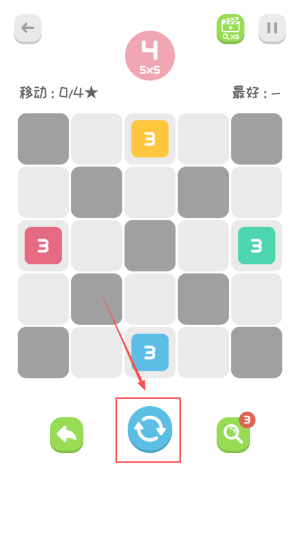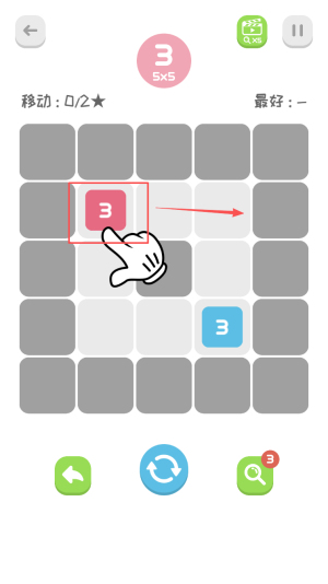 3、然后,5×5关卡用2步拿2星,挑战最好3步。