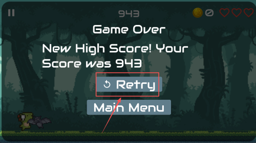 4、最后,界面显示“Game Over”点“Retry”再挑战。