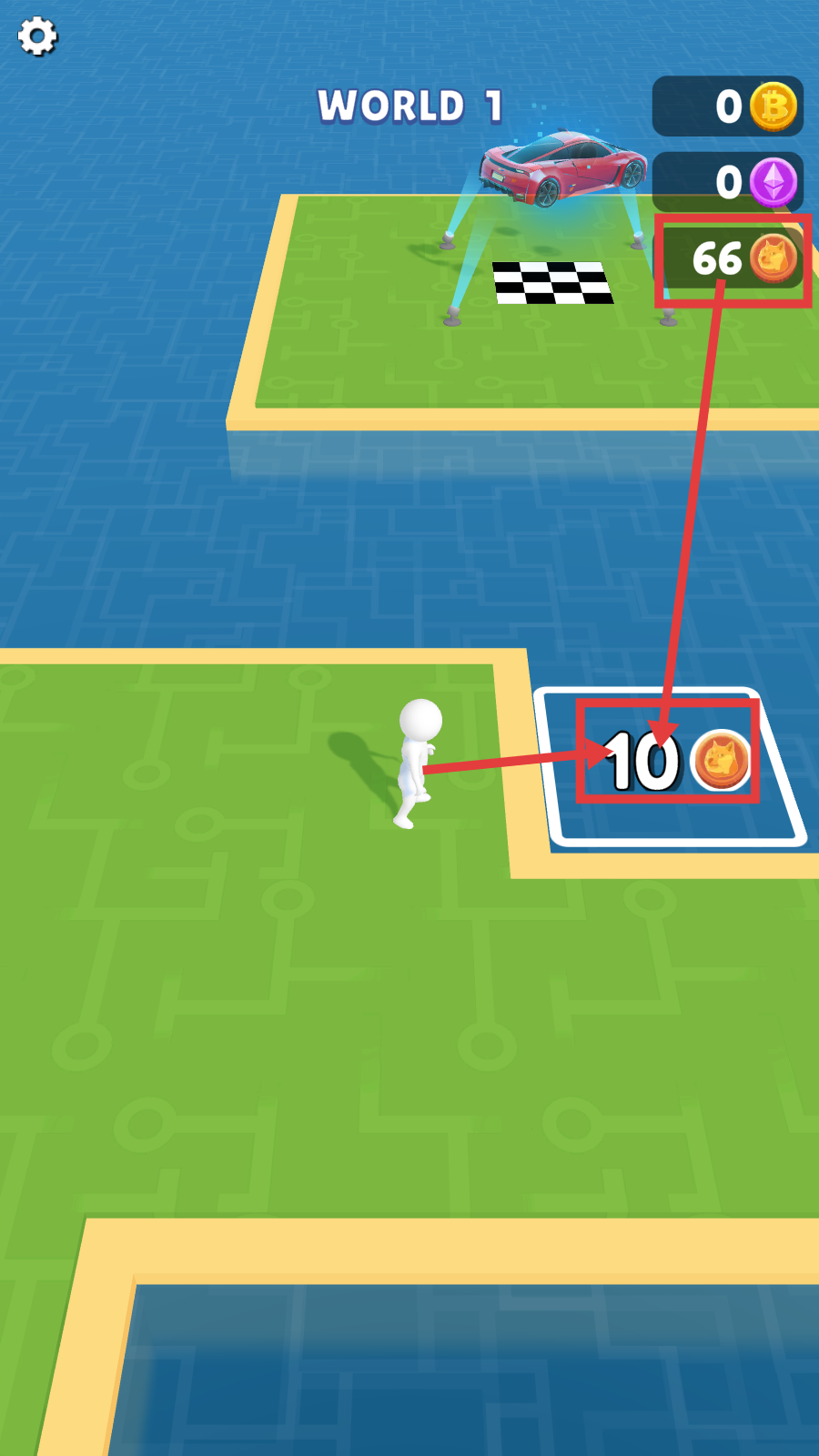 3、靠近标有【10】的橙色货币区域,获取货币,同时向带有红色汽车的目标区域前进。