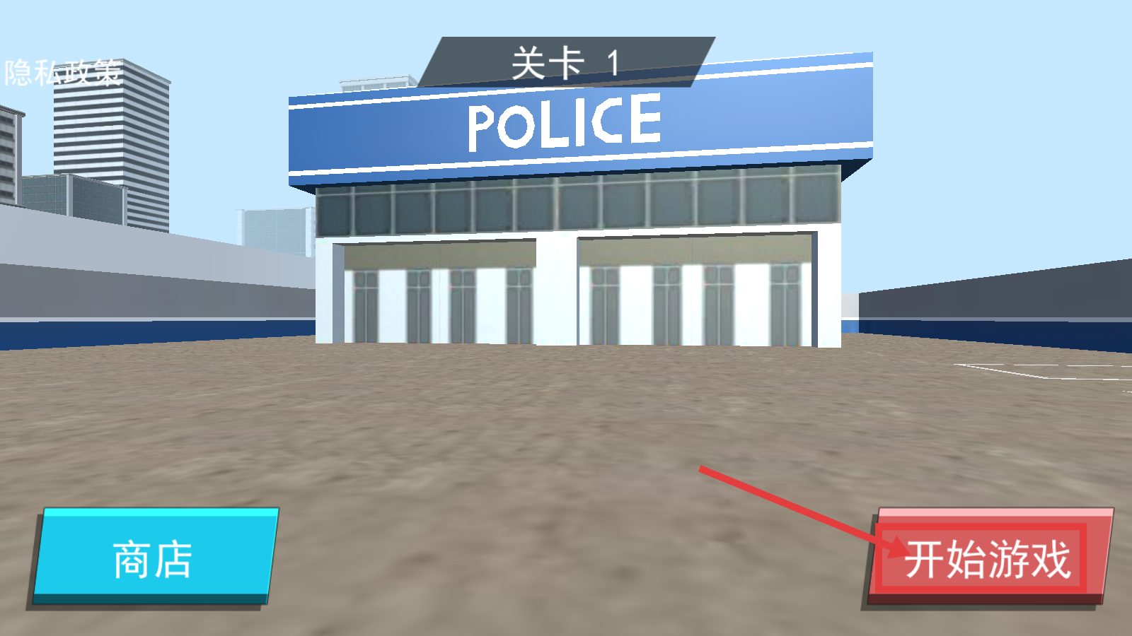 1、点击【开始游戏】按钮,进入【关卡1】,开启驾驶警车的任务挑战。