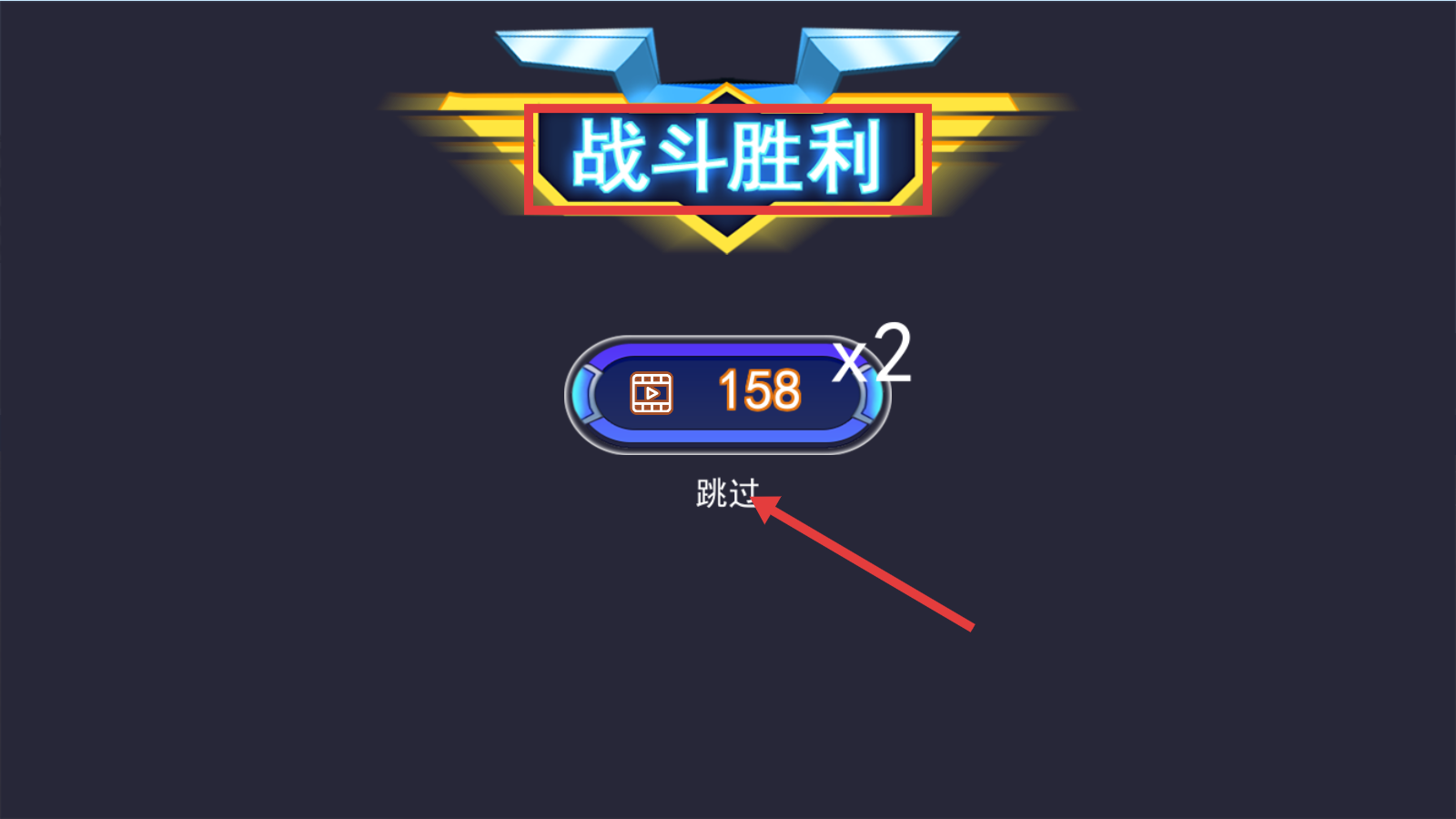 4、成功追击目标后,界面显示【战斗胜利】,可选择观看视频获取奖励或点击【跳过】,继续后续游戏流程。