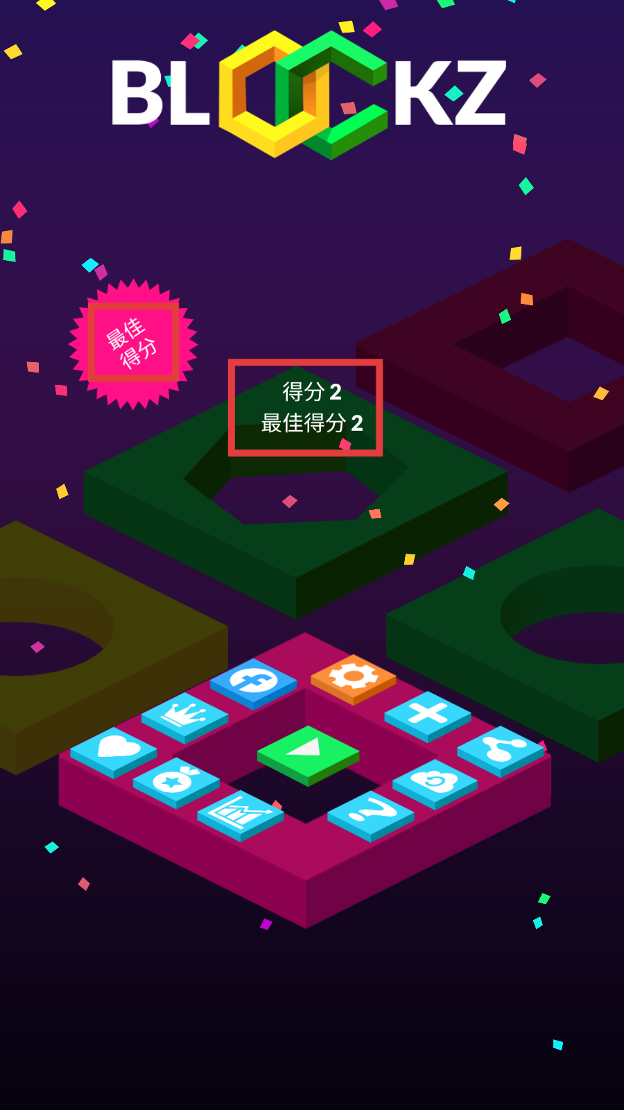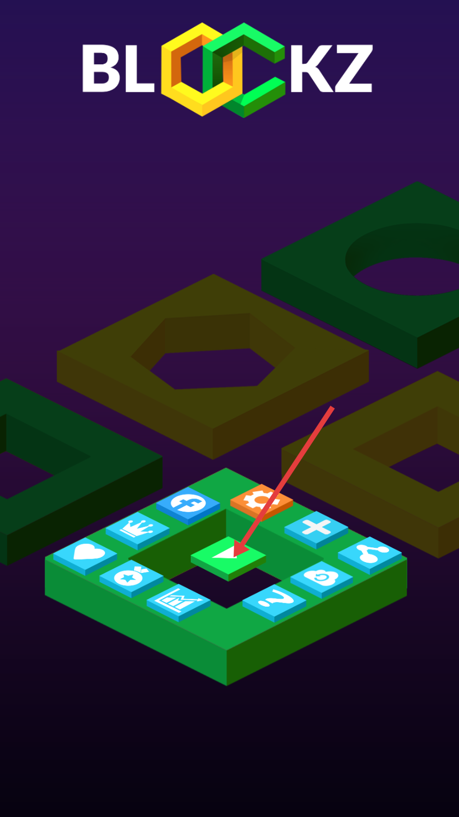 1、进入【BLOCKZ】游戏后,点击界面中间带箭头的绿色按钮,即可开启方块匹配的关卡挑战。