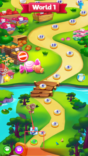 3、然后,在游戏地图上选择一个关卡,例如“World 1”中的关卡1。