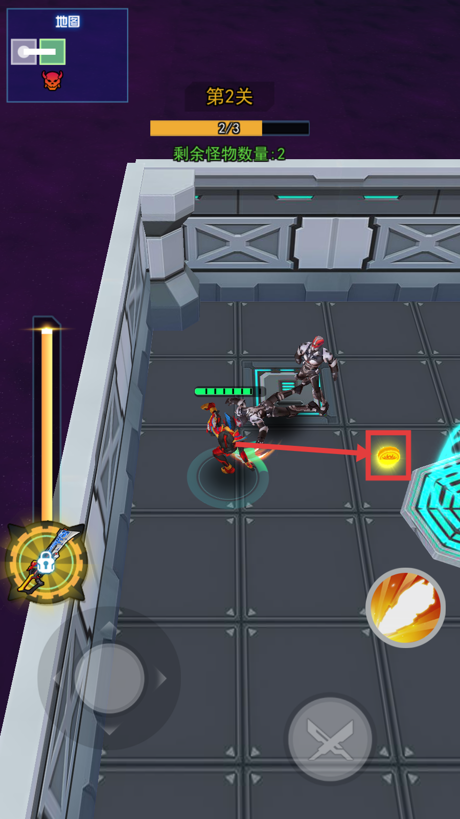 3、战斗过程中,除击败敌人,还需留意场景中的金币并收集,以此积累游戏资源。