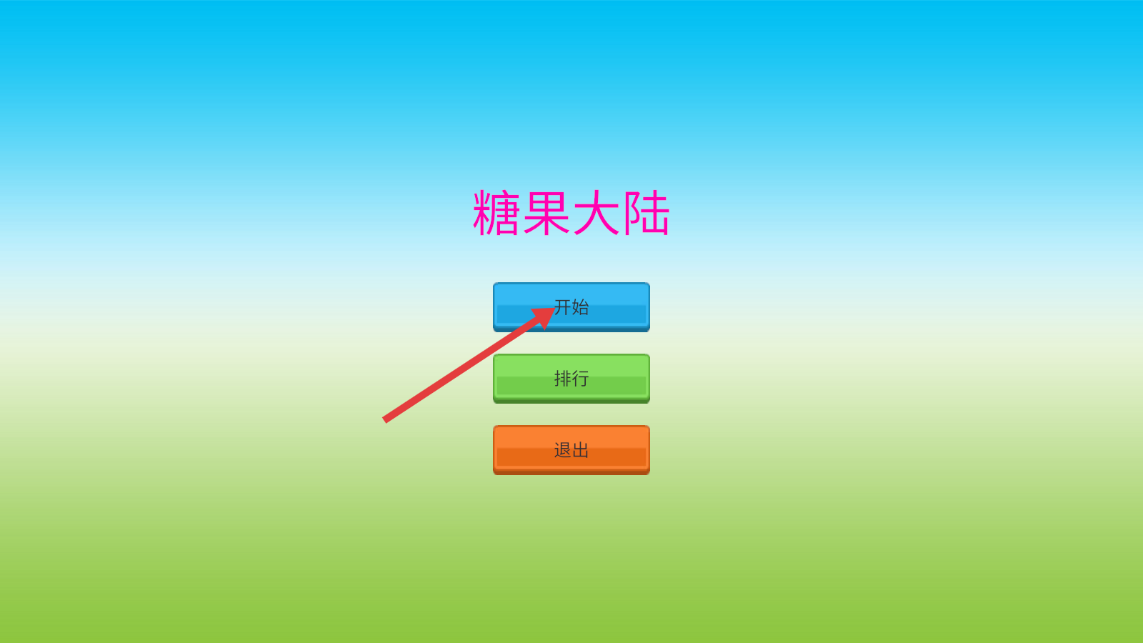 1、进入【糖果大陆】游戏,点击蓝色的“开始”按钮,开启游戏冒险。