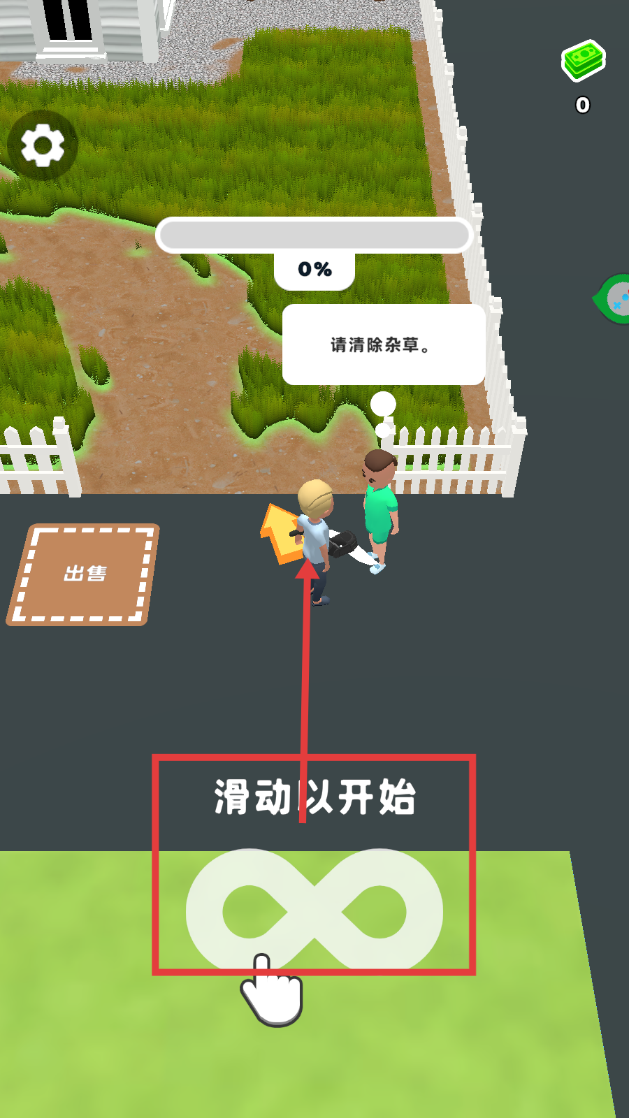 1、游戏开始时,按照提示滑动界面中的无限符号标识,即可开启除草任务,准备清理杂草。