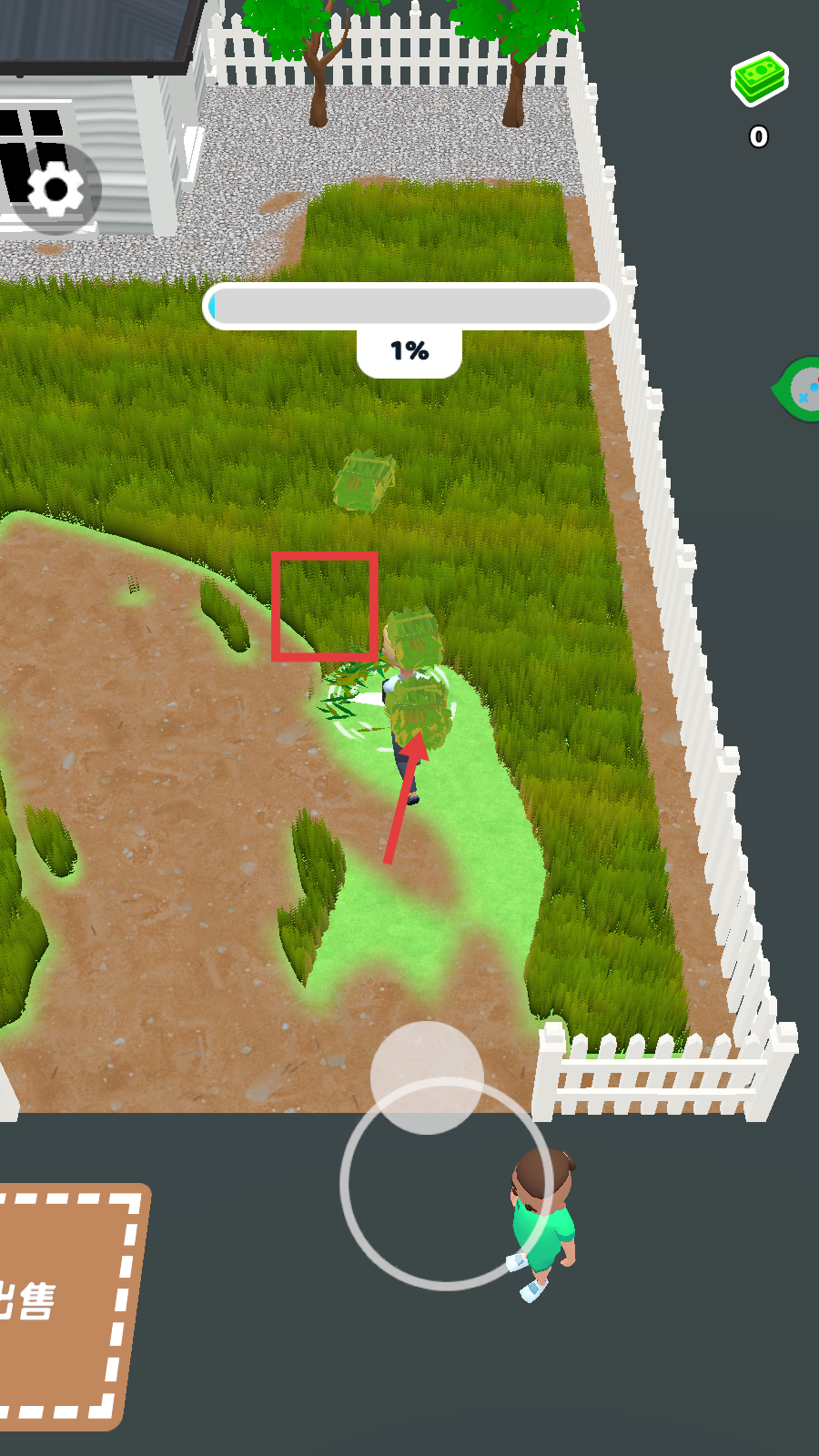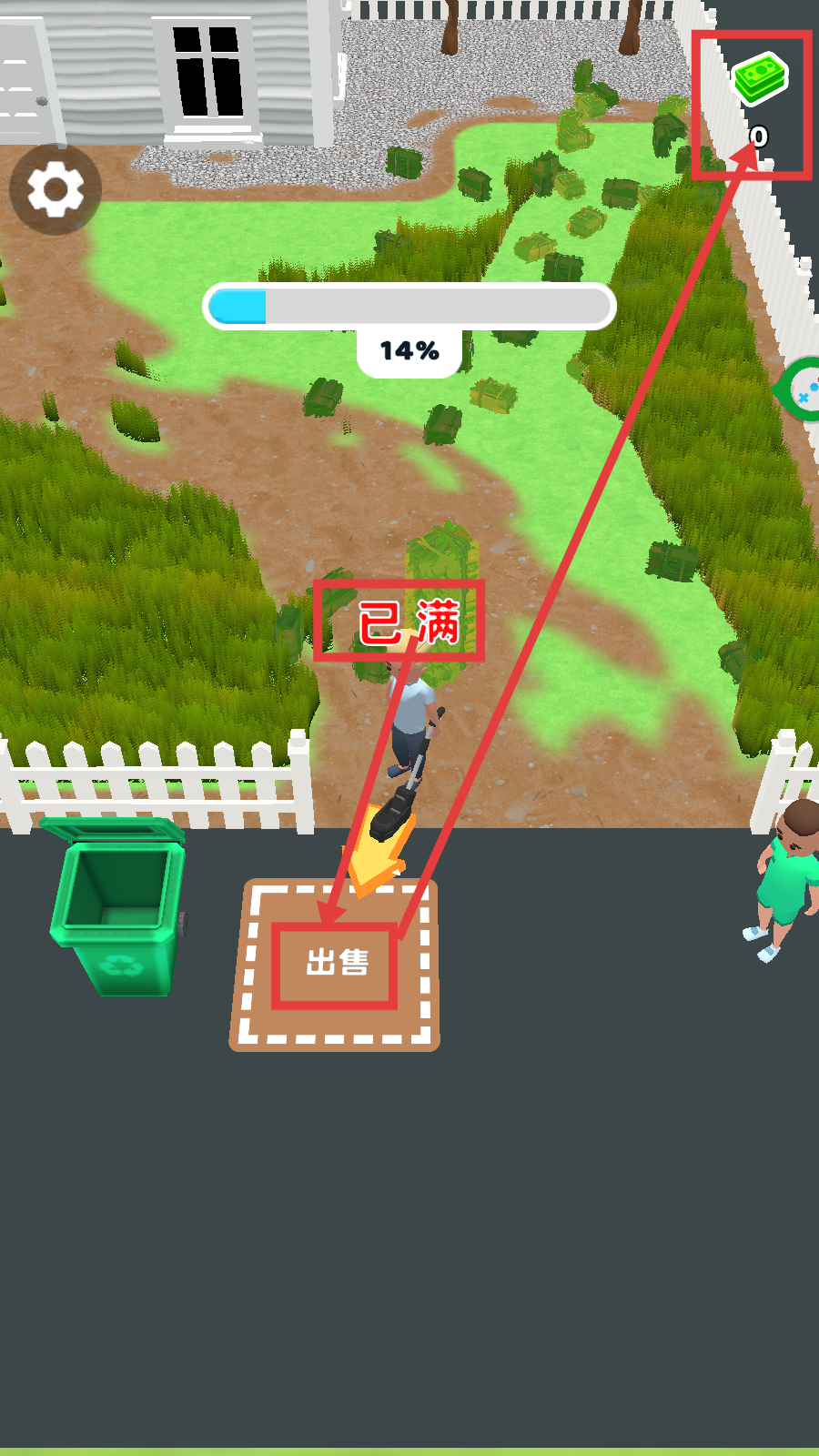 3、当角色携带的杂草达到“已满”状态时,将其移动到【出售】区域,完成杂草的出售操作,获取收益。