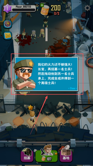 4、如何提升士兵等级,点击“基地”按钮,选择士兵进行升级。