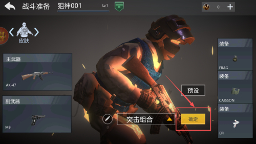 3、在战斗准备界面,选择主武器和副武器,点击“确定”按钮装备武器。