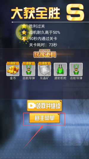 4、如何领取奖励,点击“领取并继续”或“回主菜单”按钮,领取奖励并继续游戏或返回主菜单。