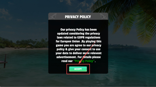 1、如何接受隐私政策,点击“ACCEPT”按钮,同意隐私政策并开始游戏。