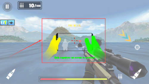 2、如何进行射击,根据教程,点击屏幕上的任何位置进行射击。