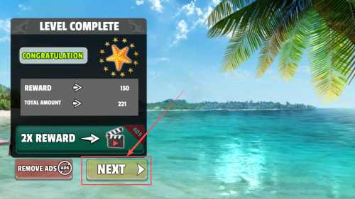 4、如何领取奖励,完成关卡后,点击“NEXT”按钮领取奖励并继续游戏。