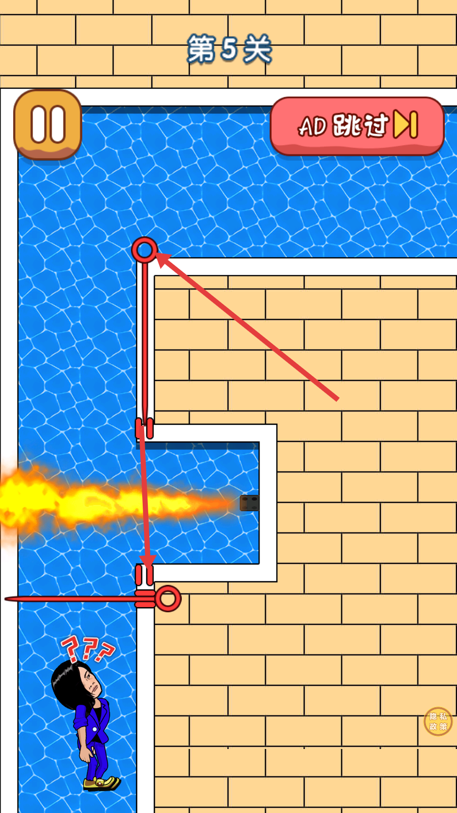 2、在第5关,先观察火焰机关,按照提示点击上方的圆环机关,为后续操作铺路。