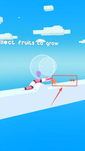 2、接着,拖动角色收集路径上的果实以增长角色长度。
