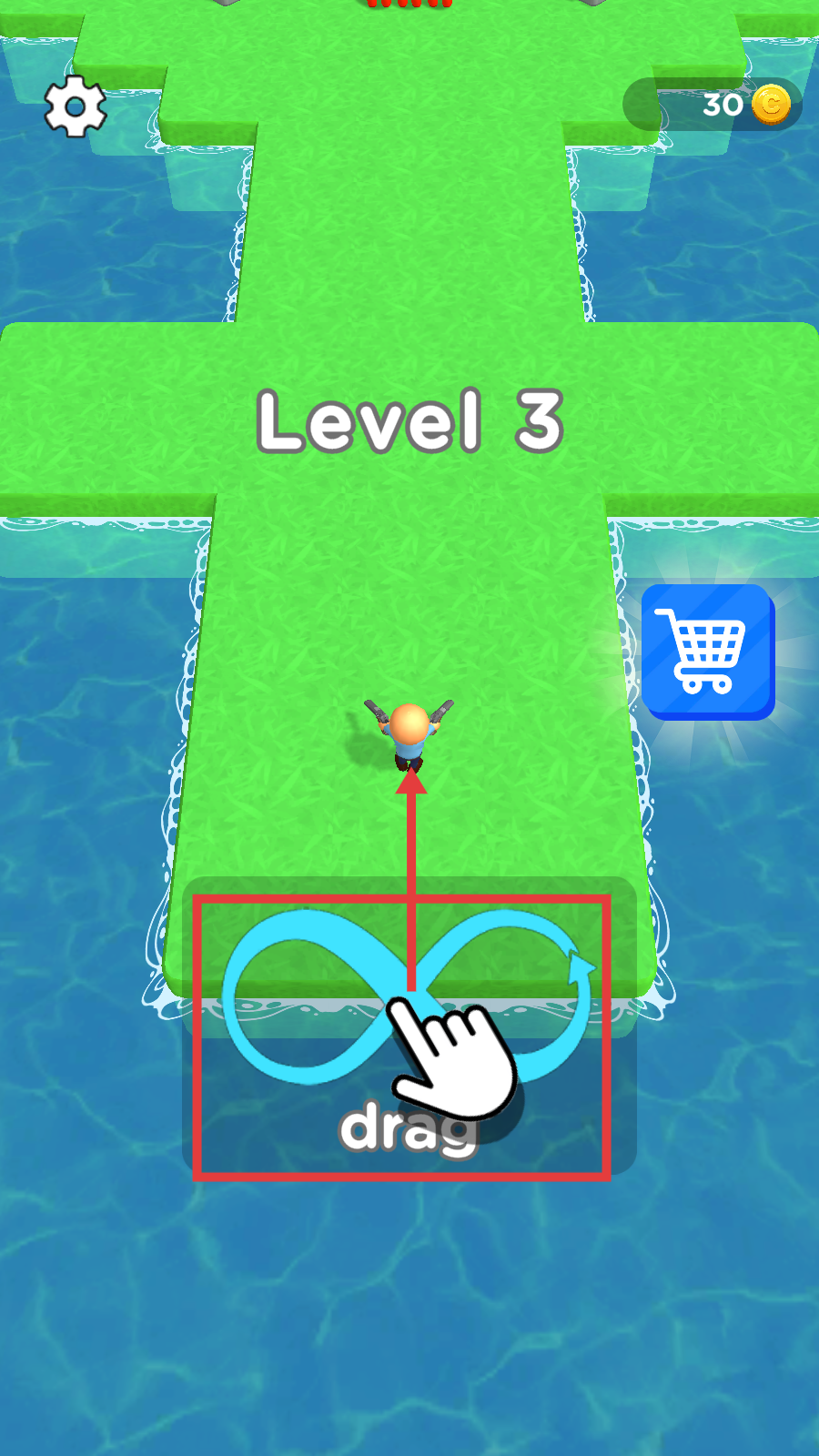 1、在【Level3】开局时,按照提示拖拽屏幕,控制角色在绿色路径上移动,为后续攻击敌人做准备。
