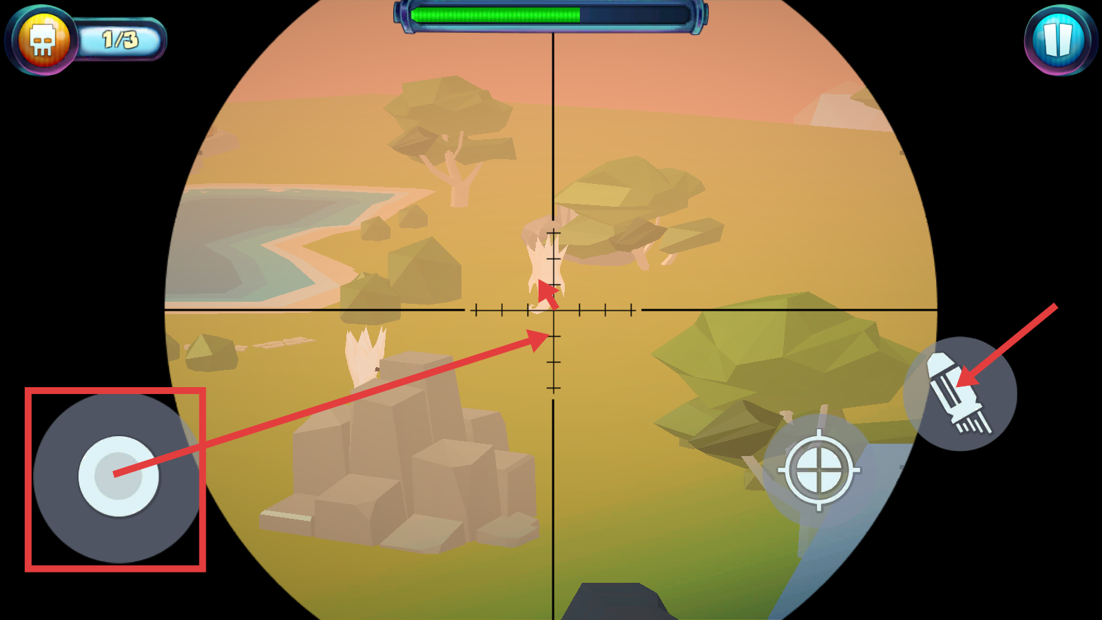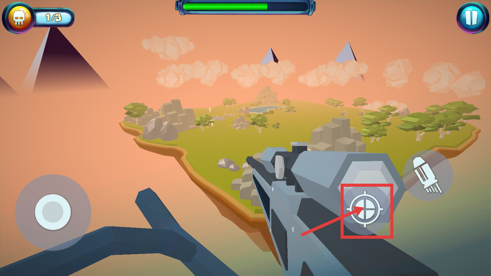 2、进入游戏后,借助屏幕左侧操控按钮调整视角,对准目标区域,利用枪械上的【瞄准镜】辅助瞄准。