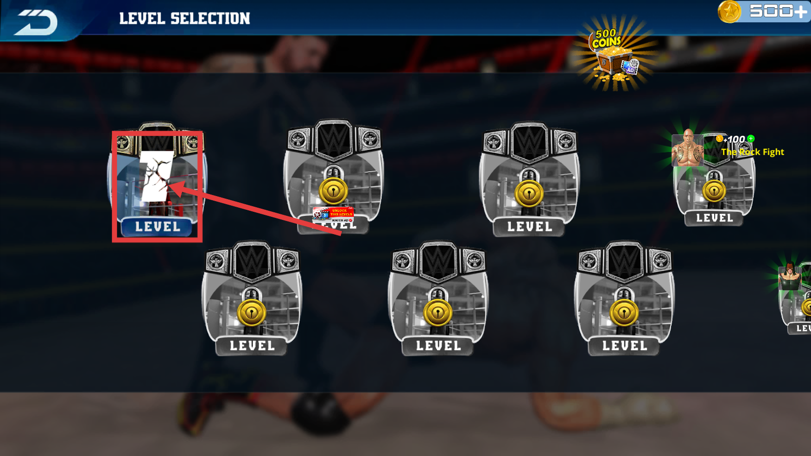 1、在关卡选择界面,点击可进入的关卡(带“LEVEL”标识且无锁的),进入摔跤比赛。