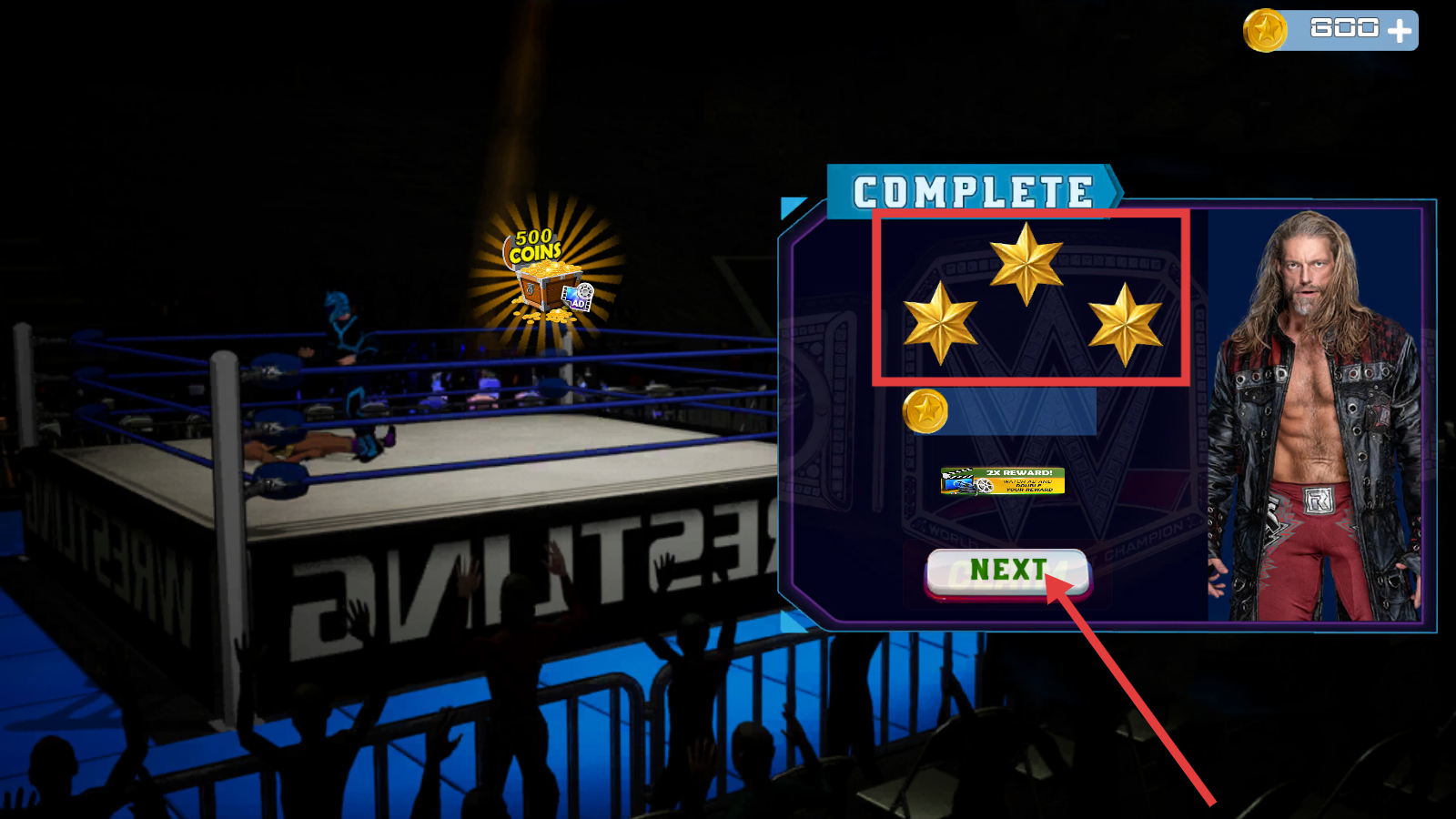 4、成功击败对手后,界面显示“COMPLETE”并获得三星评价,点击【NEXT】按钮,继续挑战下一场比赛。