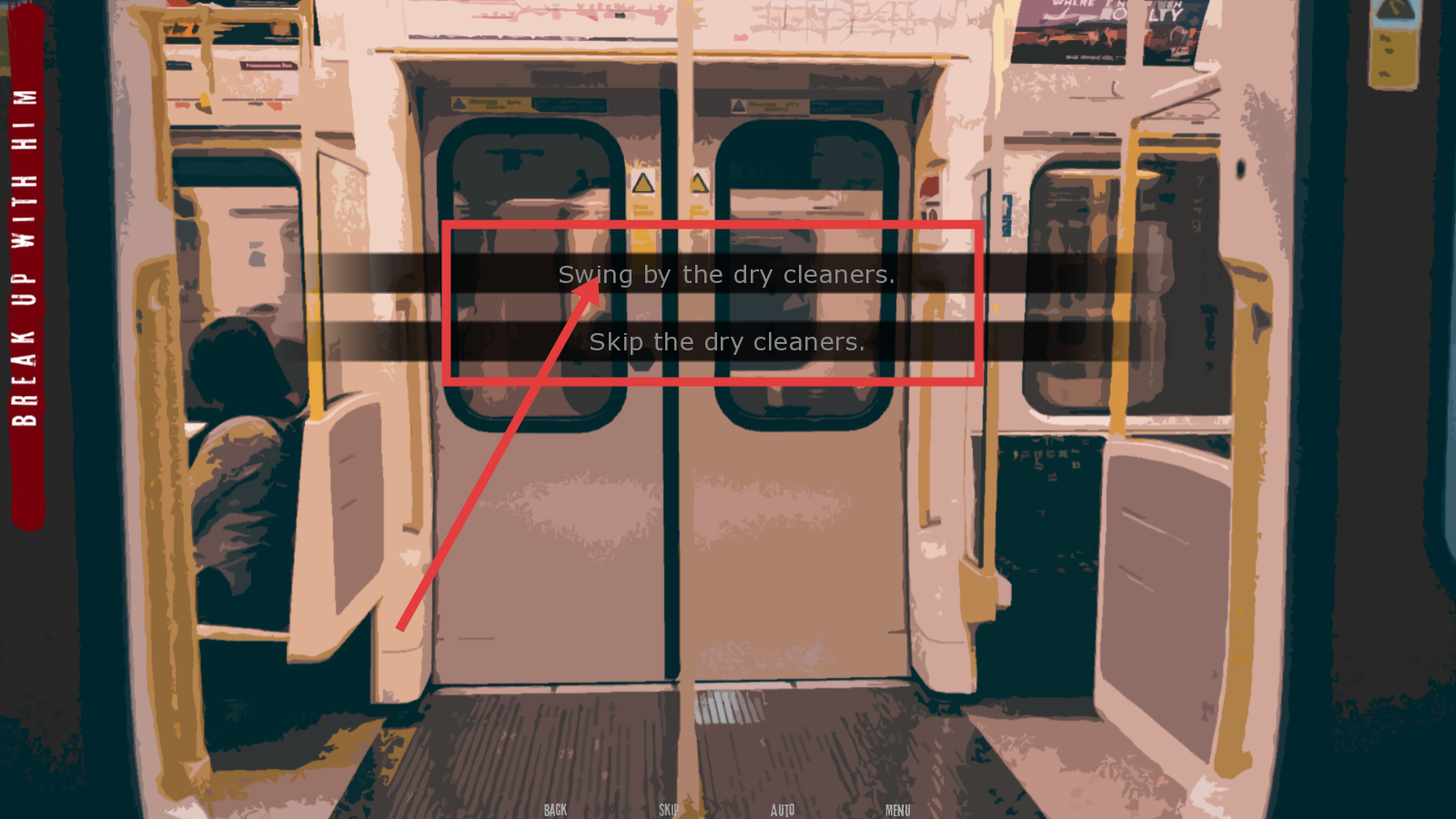 2、遇到分支选择(如“Swing-by-the-dry-cleaners.”或“Skip-the-dry-cleaners.”)时,根据喜好选择,不同选择会触发不同剧情走向。